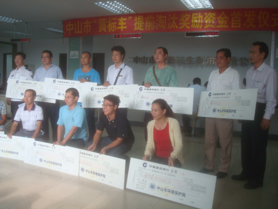 为进一步提高我市“黄标车”提前淘汰工作效率,加快我市黄标车淘汰工作,2013年10月18日下午3点,市环保局在市物资再生利用有限公司启动“黄标车”奖励资金首发式,由市环保局萧汉森纪委书记、监察分局韦国棠常务副局长对首批19位提前淘汰“黄标车”中的十名车主进行了奖励资金发放。发放金额4000元至12600元不等。